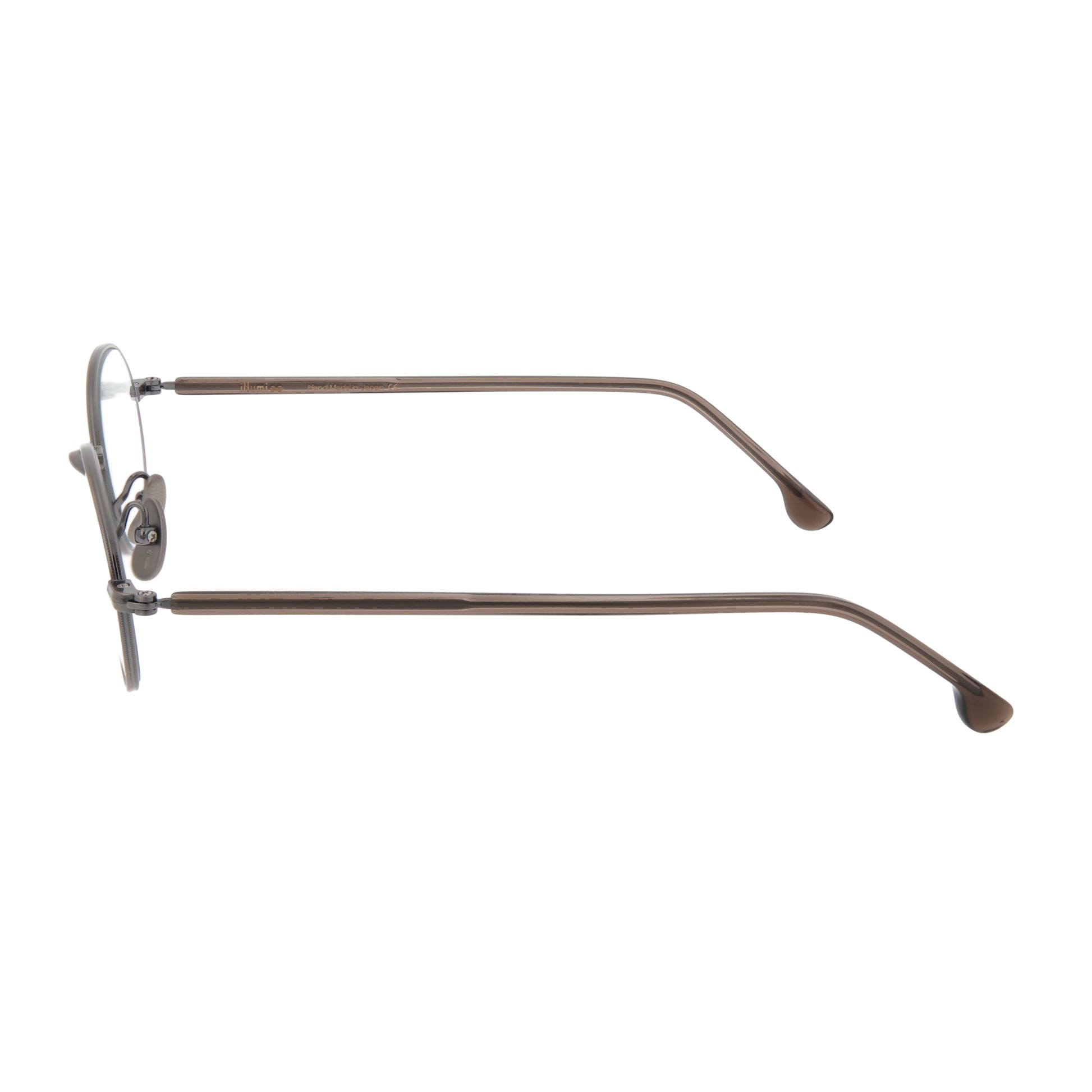 柔らかい印象を抱きやすく、女性的なラインの多いレンズシェイプだが、リム線の彫金や広めにとったフロント幅、艶感を抑えた塗装など性別問わず【カッコ良く】掛けられるデザインとなっている。